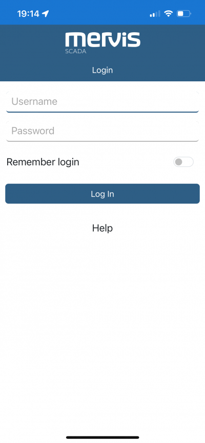 - Nejprve zadáte ve webovém prohlížeči adresu: https://scada.mervis.info/mobile.
