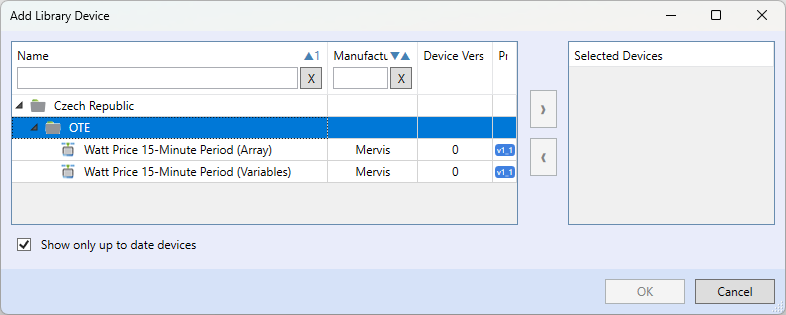 - Add a Library Device to the Channel: CzechRepublic\OTE\Watt Price 15-Minute Period (Array)