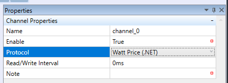 - Add a Channel to the PLC, Protocol: Watt Price (.Net)