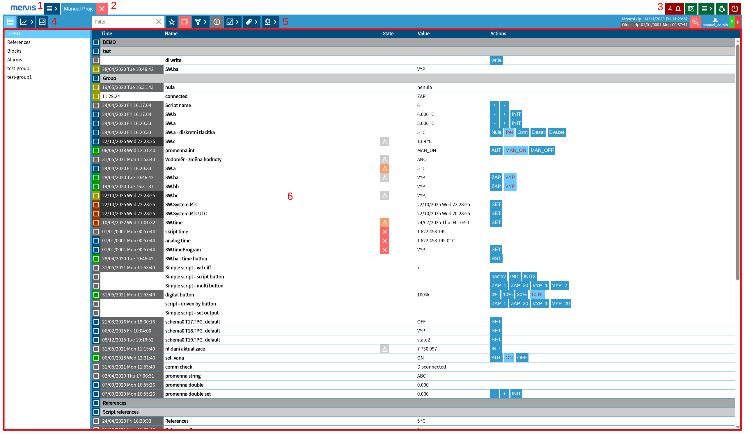 - 3 – general control elements (visible regardless of the currently opened project)