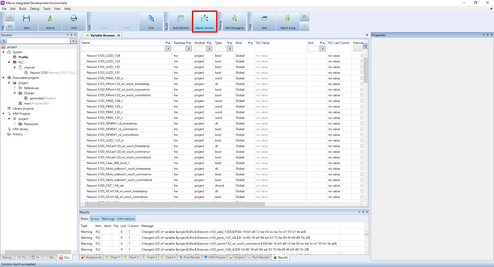 - Deploy: Click the Deploy Solution icon in the top ribbon.